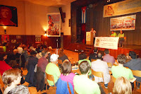 The evening was opened and welcomed by the conference MC’s, Tamara Hansen (Coordinator of VCSC and author of the book, “5 Decades of the Cuban Revolution: The Challenges of an Unwavering Leadership”), Colleen Glynn (VCSC Executive Member and Richmond Federal New Democratic Party President) and Aaron Mercredi (organizer with VCSC and organizer with the Indigenous Rights and Action Project). Over 120 people joined together for the opening night, at the Mount Pleasant Neighborhood House in Vancouver. The event started with an explanation of the case of the Cuban 5 by Tim Louis, former Vancouver City Counsellor and long-time supporter and activist of social justice causes. Participants also heard two video messages of solidarity from the U.S., from Gloria La Riva, coordinator of the National Committee to Free the Cuban 5, and from Alicia Jrapko, coordinator of the International Committee to Free the Cuban 5.